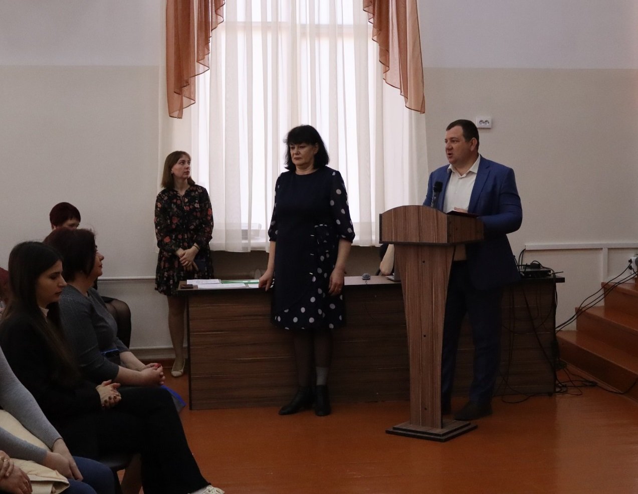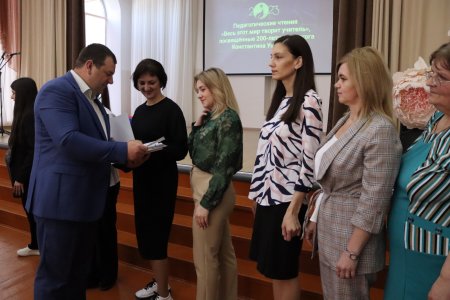 С приветственным словом к участникам педагогических чтений обратились заместитель начальника управления образования администрации Советского городского округа Германовская Галина Павловна и председатель территориальной организации Профсоюза Крисанов Антон Алексеевич. В своем выступлении Галина Павловна отметила значимость вклада Константина Ушинского в становление отечественного образования и подчеркнула, что спустя два столетия его принципы обучения остаются актуальными. А Антон Алексеевич наградил всех выступающих сертификатами участника, отметив высокий уровень работ педагогов представленных на чтениях.